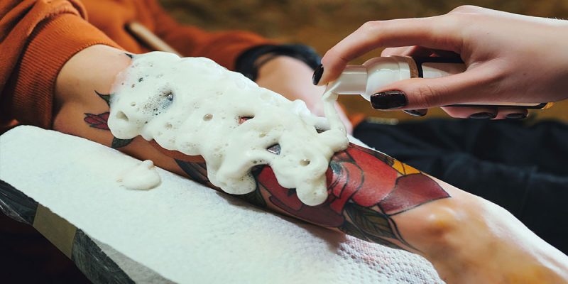 - توصیه به مشتری برای شستشوی روزانه ناحیه تتو با آب ولرم و صابون ملایم.