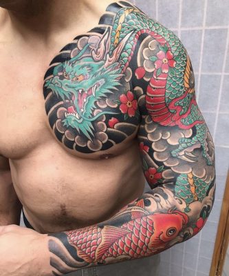 1. طرح‌های بزرگ و پیچیده: تتوهای ژاپنی اغلب کل بدن یا بخش‌های بزرگی مانند پشت، سینه یا بازوها را پوشش می‌دهند. این طرح‌ها معمولاً به‌صورت یکپارچه و هماهنگ طراحی می‌شوند.
